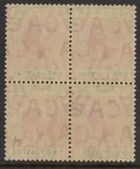 1915 Cyprus KGV SG.77b 1pi. carmine & blue. block of 4 U/M (MNH)