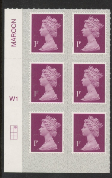 U2920 1p deep crimson M18L Cyld. W1 grid position R1 C2 SBP s/L Walsall/ISP U/M (MNH)