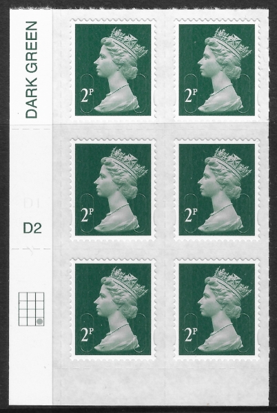 U2921 2p 2B deep green M15L cyld. D2 grid position R4 C3 DLR U/M (MNH)