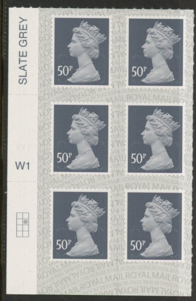 U2925 50p 2B slate M19L Cyld. W1 grid position R2 C2 SBP s/L Walsall U/M (MNH)