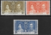 1937  Seychelles   SG.132-4  Coronation set 3 values U/M (MNH)