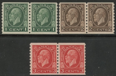 1933 Canada SG.326-8 coils Set of 3 values mounted mint