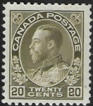 1915 Canada SG.226 20c olive green War Tax overprint. U/M (MNH)
