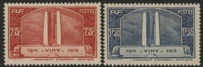 1936 France SG.549-50 Unveiling of Canadian War Memorial - Vimy Ridge. U/M (MNH)