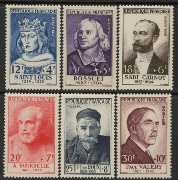 1954 France SG.1215-220 National Relief Fund Portraits Set of 6 values U/M (MNH)