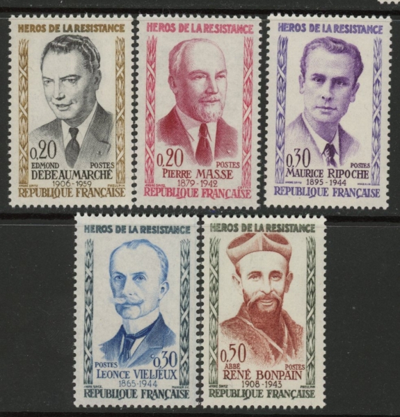 1960 France SG.1478-82 Heroes of the Resistance (4) Set of 5 values U/M (MNH)