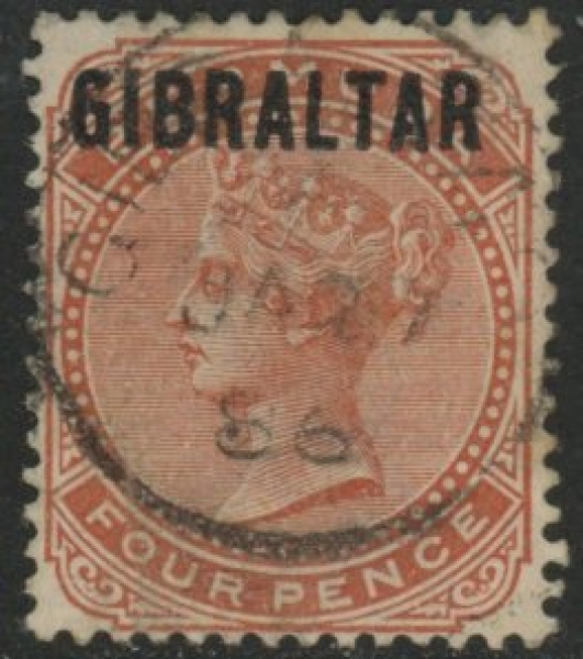 1886 Gibraltar. SG.5 4d orange-brown fine used.