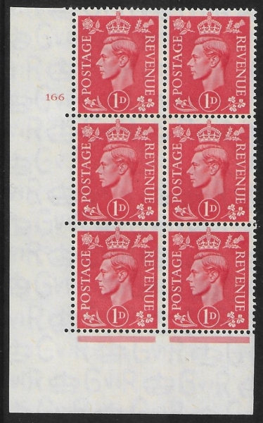 1941 1d pale scarlet Q5 (SG.486) Cyld. 166 no dot. perf E/I U/M