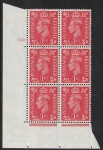 1937 1½d red-brown  Q7 (SG.464)  Cyld. 49 dot.  control B37  perf E/I  U/M