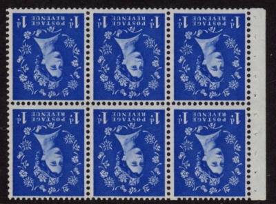 SB31a Crowns 6 x 1d, inverted wmk. whiter paper. perf I good perfs.U/M (MNH)