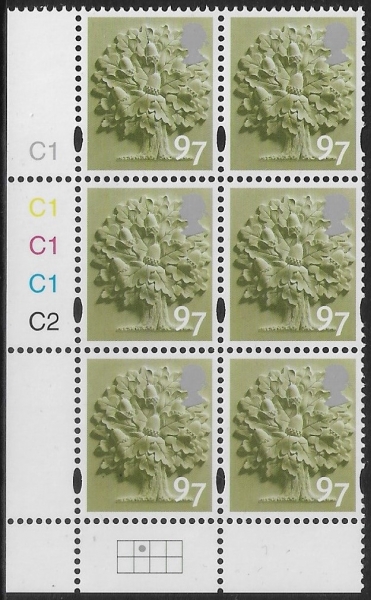 EN 34 97p Oak Tree 2B cyld. C1x4 C2 Phos C1 Grid R1 C2 Cartor. U/M (MNH)